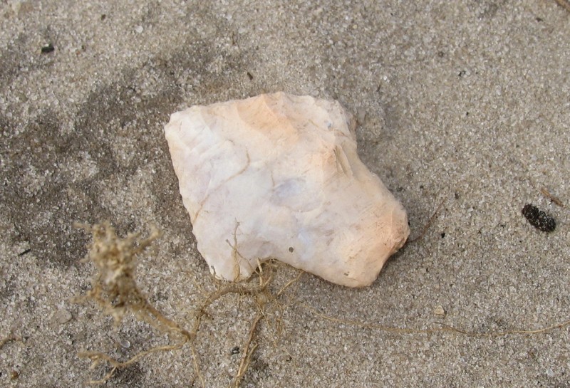 We pulled a rake through the loose sand and "clink"- an arrowhead!